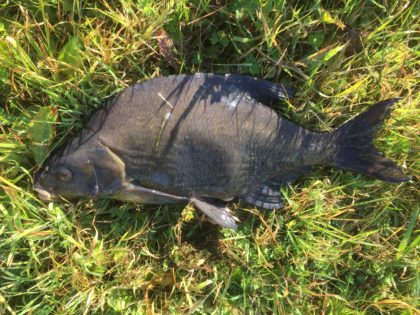 Deze brasem had een zwarte streamer van Dick over het hoofd gezien en werd vals gehaakt.