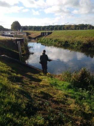 Op de achtergrond de brug waar nog 2 keer een snoek naar zijn streamer hapte maar dit erg slim deed zodat Jan hem niet te pakken kreeg.