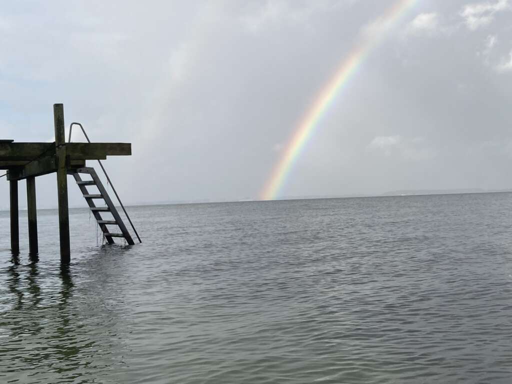 Enorme regenbui met Marcel rechts nog even in beeld.