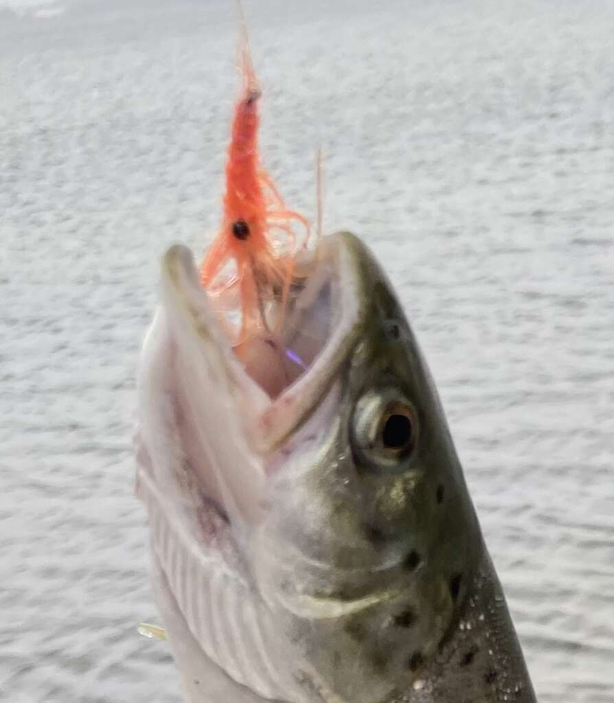 Succes vooral met de zalm/rode/oranje garnaal en de mysis (met rood/oranje “kontje”). Met name de skinny variant. Deze zou ook voor Gammarus kunnen doorgaan.