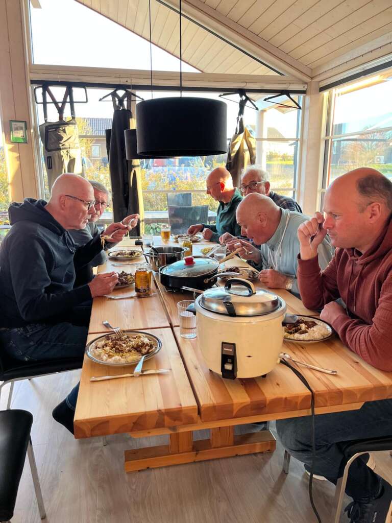 Het was hard ploeteren door het veel te mooie strandweer, op de laatste middag na, een seatrout bonanza. Het eten, lees de kok, liet zich er niet door weerhouden. Was weer gezellig.