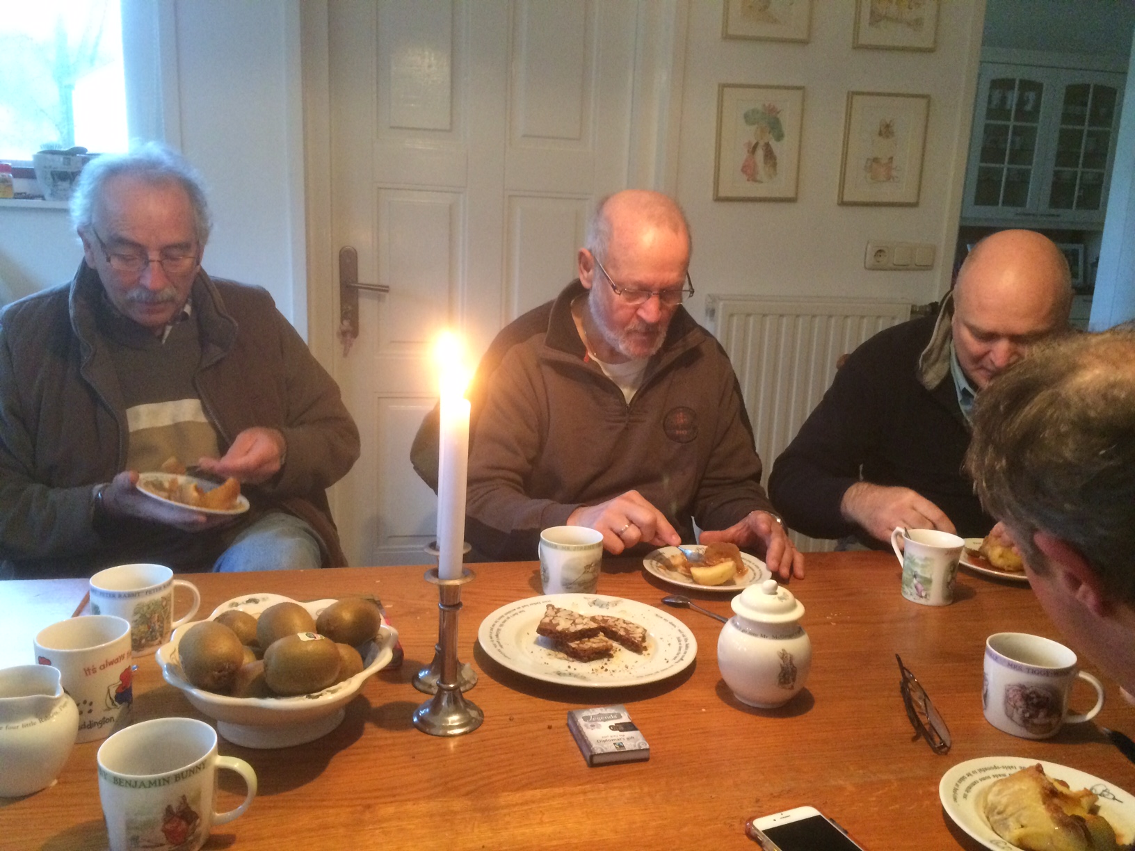We zijn bij Ton weer groots onthaald met koffie en een warme appelbol zo uit de oven.